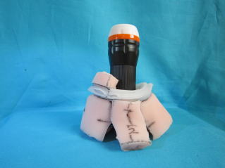 ・留め具が外せたらTENGAの本体(キノコ)を取り出し、柄の部分を切り落とす。(柄の部分は使いません)