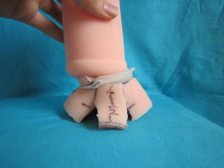 (平らな面のないオナホールの場合は、高さ4cm以上を残しつつ、輪切りにして平らな面を作ります)
